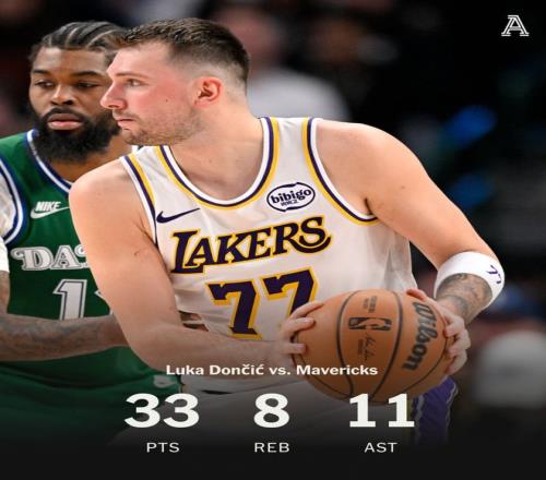 东契奇这场比赛39分钟,15中8,三分8中3,罚球15中14,拿到33分8篮板11助攻1抢断1盖帽,命中率53.3%,他在末节也拿到9分1篮板2助攻1盖帽,虽然防守端他的确是一个漏洞可进攻端湖人还是得仰仗他。